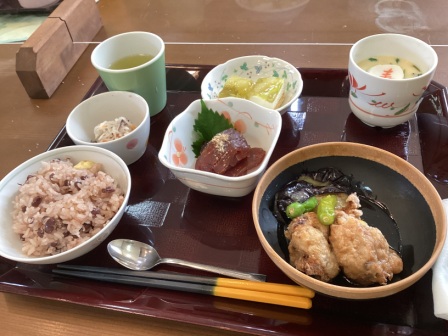 祝い膳は、茶わん蒸し、里芋まんじゅう、栗入り赤飯、